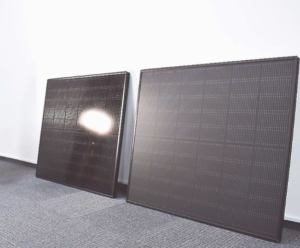 新しい太陽光モジュールは反射光を大幅カット、防眩と軽量(重さも22㎏→約8.9㎏と従来の約60%と軽量)